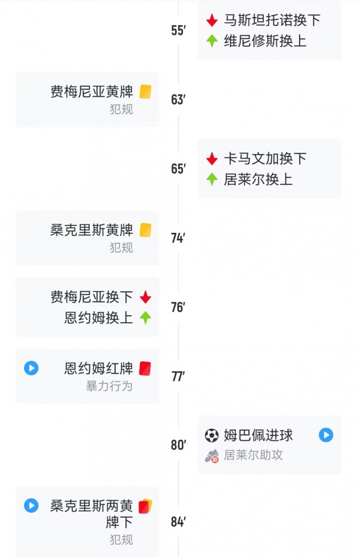 Phút 77, Nyom, người cũng vào sân thay người, đã bị trọng tài đuổi khỏi sân vì phạm lỗi với Vinicius chỉ sau một phút thi đấu.